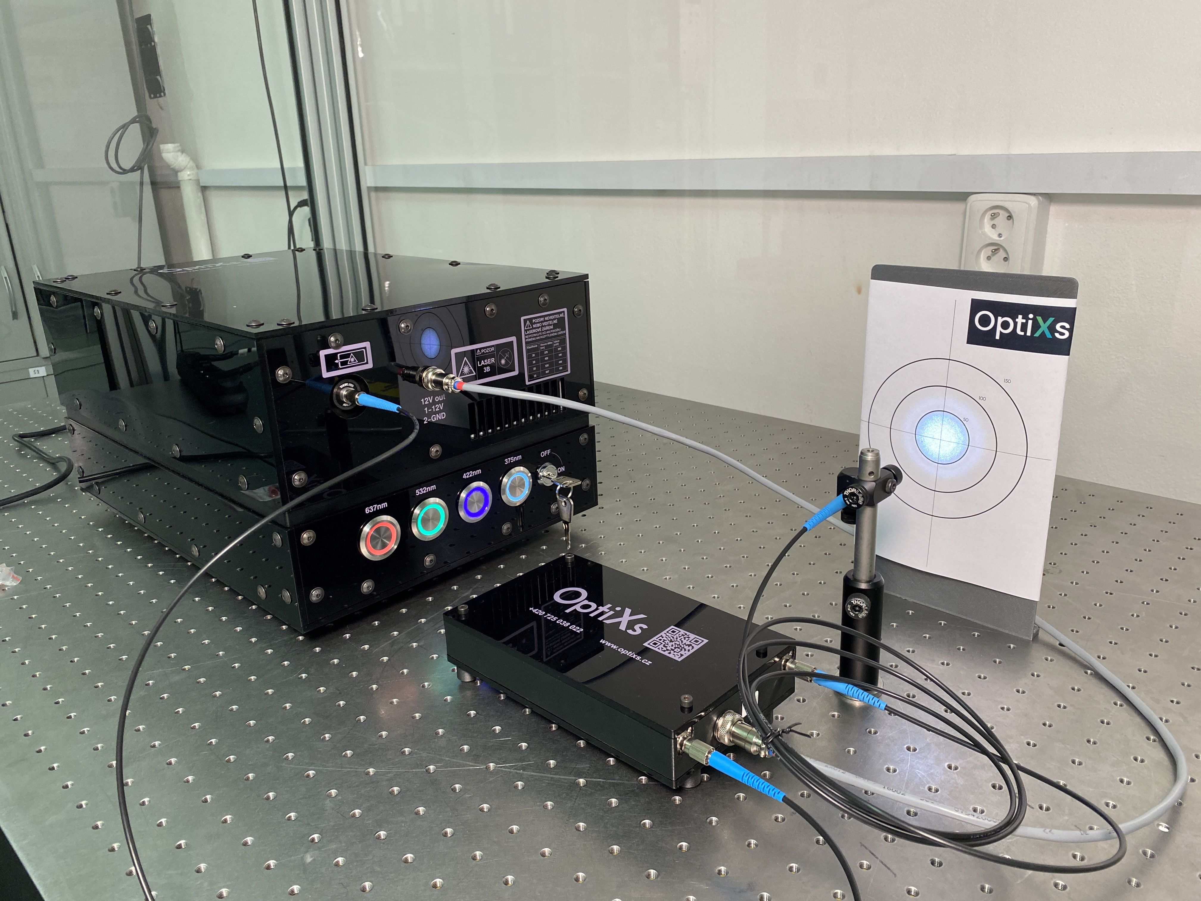 - Nominální účinnost navázání výkonu > 70% pro všechny lasery (výkon na konci vlákna / výkon na free space