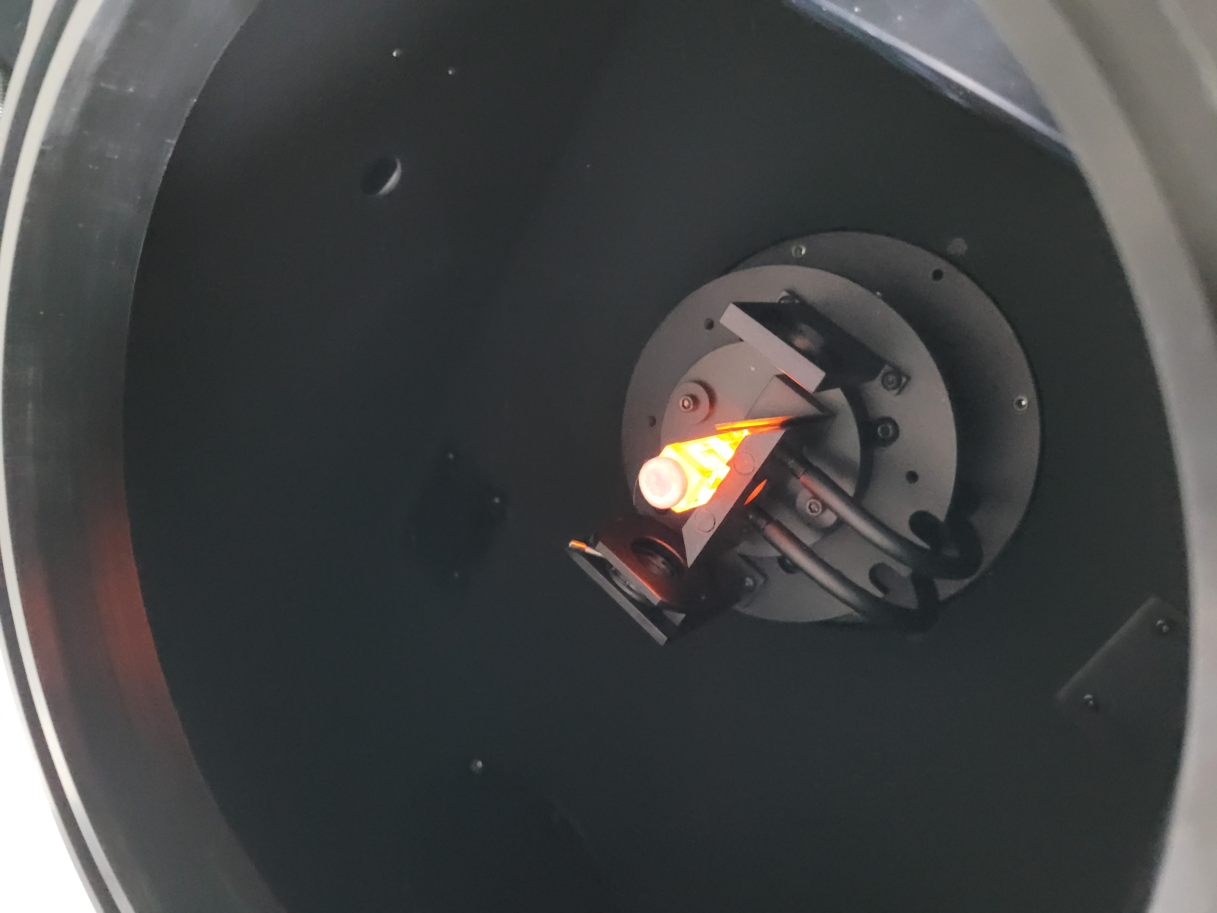 The client requested a system for measuring transient absorption using the pump & probe method with a perpendicular arrangement of the excitation and probe beams. The spectrometer had to include a xenon lamp (probe beam source) with a pulse unit, a sample chamber with a holder for standard spectroscopic cuvettes, a Czerny-Turner monochromator with a focal length of at least 325 mm, and a photomultiplier with a spectral range of at least 200–870 nm. A modular Q-switched Nd:YAG laser (1064 nm, min. 450 mJ) containing removable modules for generating second, third, and fourth harmonic frequencies (min. 130 mJ at 355 nm, min. 60 mJ at 266 nm) was to be used for excitation.