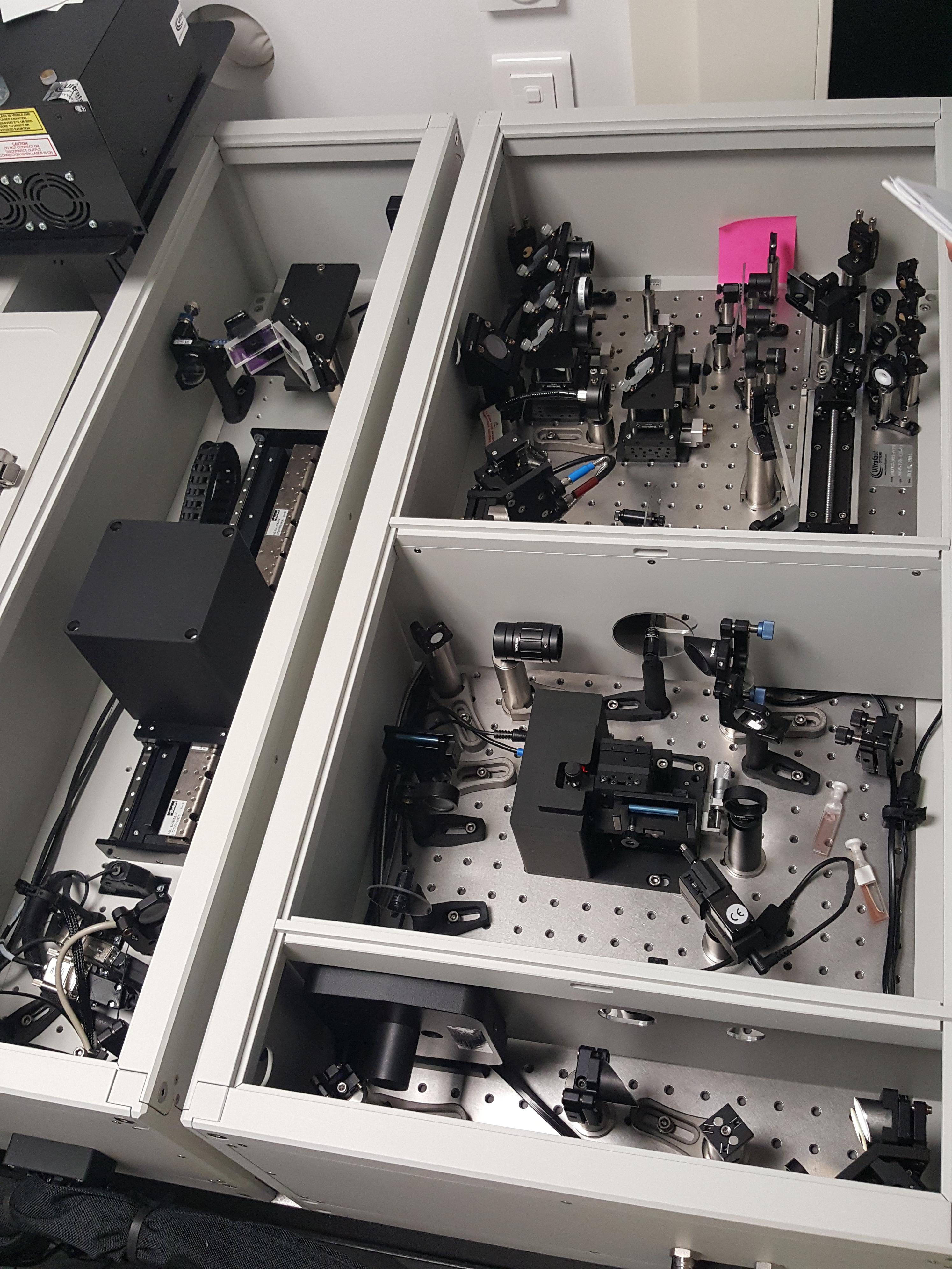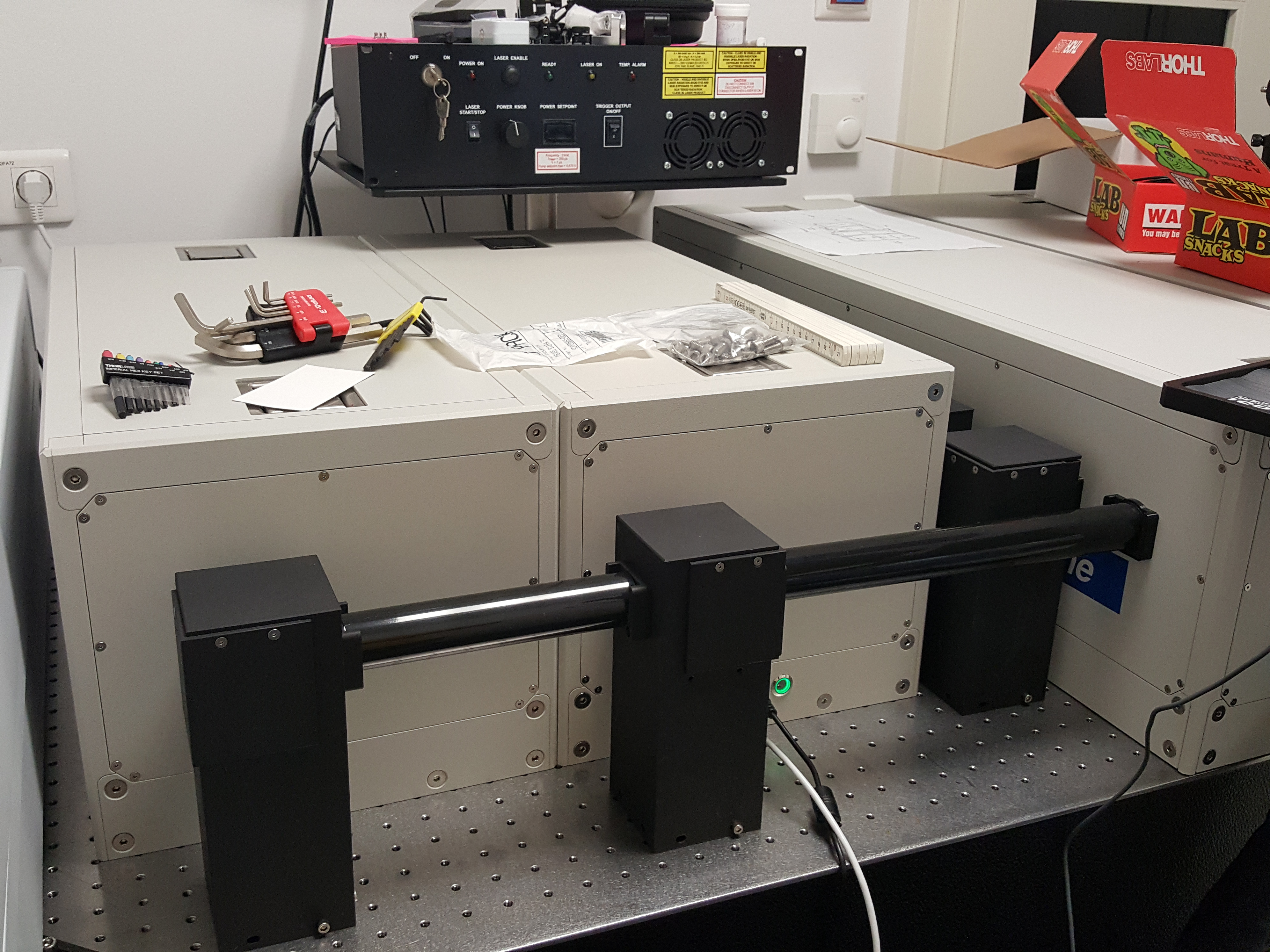 • Excitation (pump) using femtosecond pulses from a collinear optical parametric amplifier (tunable range 320-1300 nm)