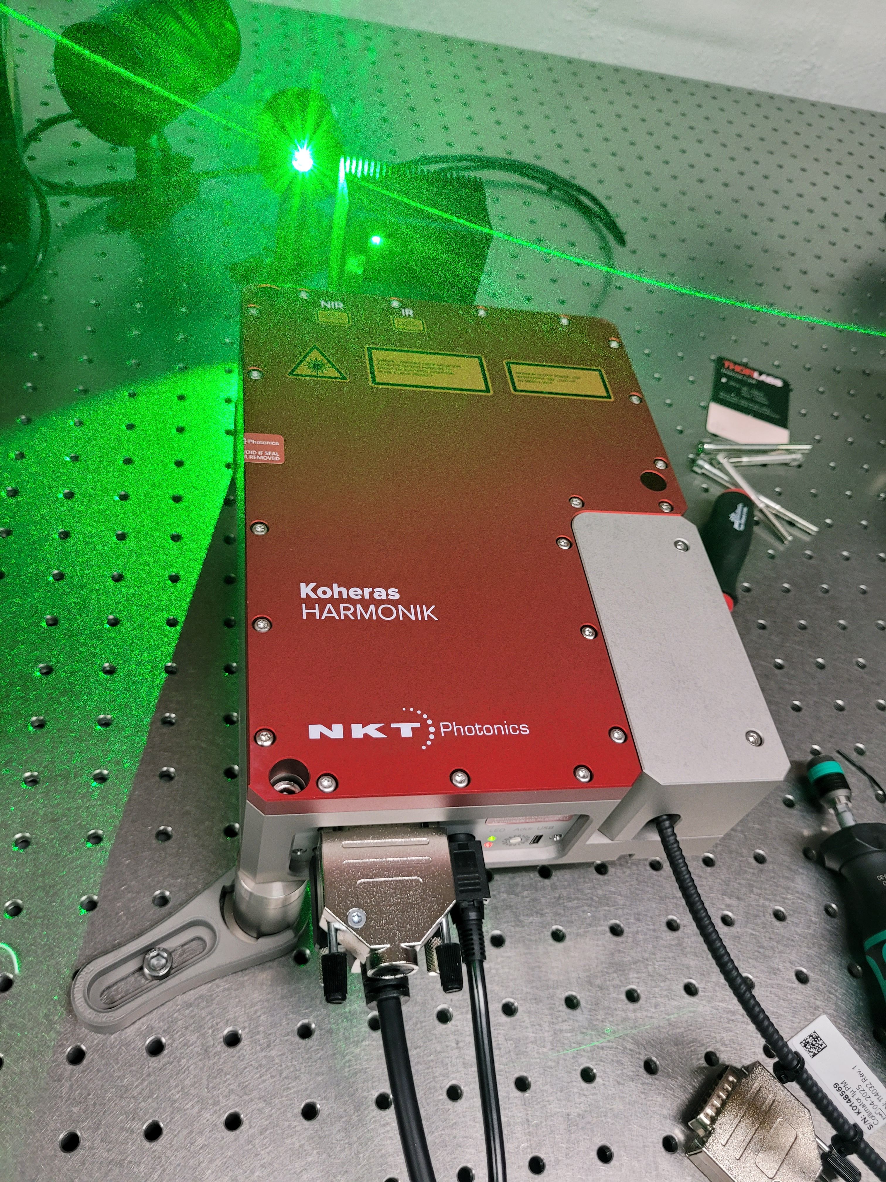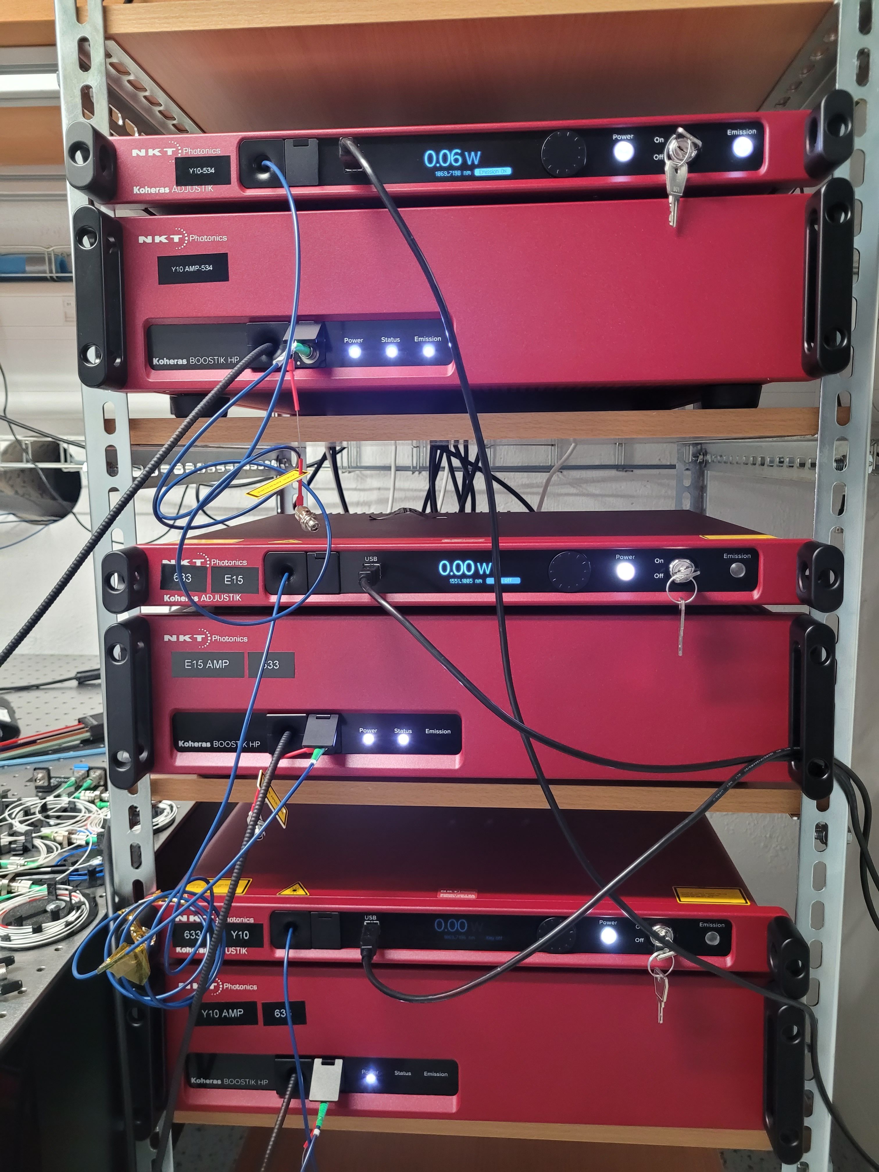 Systém HARMONIK H63 se skládá ze 2 jednotek Koheras BOOSTIK (1069,72 nm & 1551,10 nm) a modulu Koheras HARMONIK pro generaci záření součtové frekvence (svazek na 633,10 nm, >3 W, spektrální šířka čáry <20 kHz).