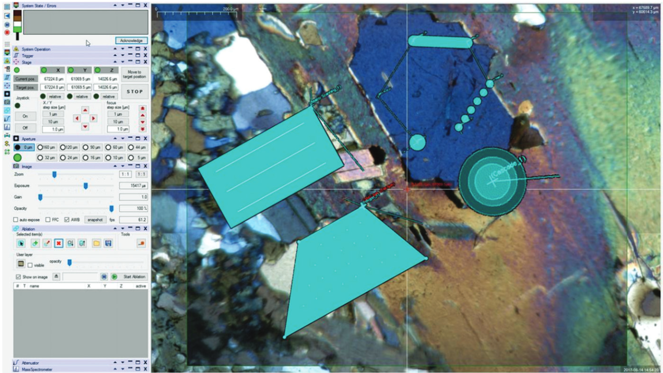 GeoLas HF is a new generation laser ablation system for all types of LA-ICP-MS elemental and isotope analysis from Coherent. The system, based on the powerful COMPex excimer laser, is a unique setup containing a high quality stable optical path, a microscope and an HD camera system to capture the sample and ablation process. The new intuitive EAGLE control software enables real-time sample and ablation tracking and seamless sample mapping with the option of adding an external overlay image.