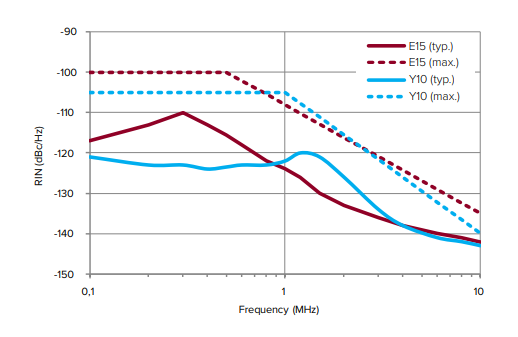 - Jednofrekvenční výstup, velmi úzká šířka čáry