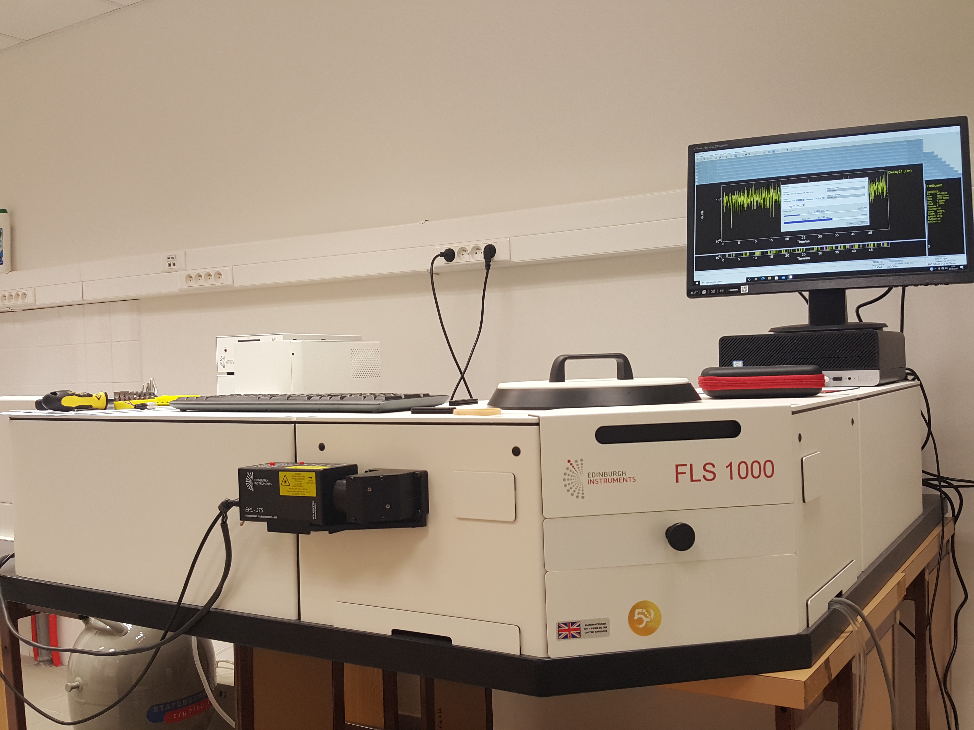 Zadáním klienta byl spektrometr pro měření ustálené i časově rozlišení fotoluminiscence organických i anorganických látek. Přístroj musel mít garantovanou citlivost větší jak 30 000:1, výkonné monochromátory typu Czerny-Turner a prostornou vzorkovou komoru s přístupem z čelní, boční, horní i spodní strany. Fluorimetr musel dále obsahovat následující zdroje buzení: xenonová lampa, mikrosekundová xenonová výbojka a sadu pikosekundových pulzních diodových laserů (minimálně pro 375 nm, 450 nm, 510 nm a 640 nm). Upřesňujícím parametrem byl rychlý fotonásobič s TE chlazením a šířkou odezvy <250 ps pro měření v UV-VIS oblasti a kapalným dusíkem chlazený NIR fotonásobič s citlivostí až do 1700 nm.