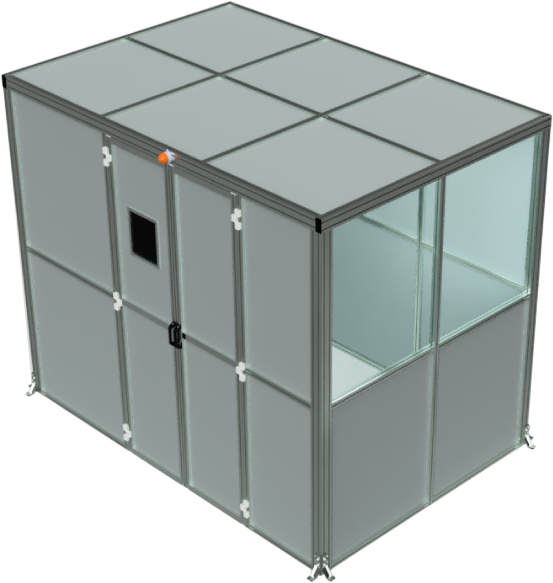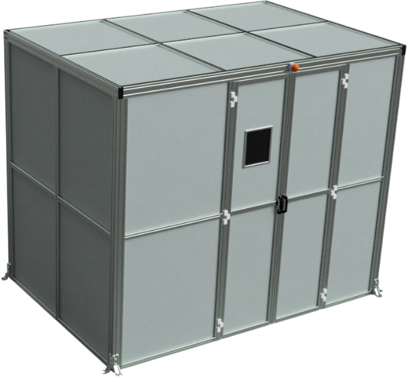 Zde představujeme typový model naší laserové buňky. Konstrukce o rozměrech 3 × 2 metry a výšce 2,5 metru představuje profesionální řešení pro vytvoření plně izolovaného a certifikovaného pracoviště v souladu s bezpečnostními normami ČSN EN 60825-4 a 60825-1. Je navržena tak, aby poskytovala ochranu před rozptýleným zářením u vysoce výkonných systémů, jako jsou CO2 lasery Coherent Diamond J-1000 nebo Coherent Compact Evolution pro laserové svařování plastů. Buňka umožňuje transformovat okolní prostor v hale či laboratoři na bezpečné pracoviště, kde může personál pracovat bez nutnosti používat ochranné brýle nebo dodržovat speciální bezpečnostní zóny.