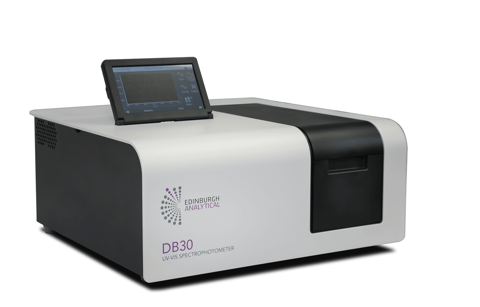 Dvoupaprskový UV-VIS spektrofotometr DB30 od Edinburgh Analytical je určen pro analytické aplikace, kde přesnost a preciznost měření hrají klíčovou roli. DB30 je vhodný pro širokou škálu typů vzorků. Díky duálnímu světelnému zdroji a dvoupaprskovému monochromátoru typu Czerny-Turner poskytuje DB30 kompaktní, spolehlivý a vysoce výkonný optický systém. Mezi jeho další přednosti patří nízká hodnota nežádoucího rozptýleného světla (stray light), vysoká přesnost nastavení vlnové délky, vysoká fotometrická přesnost a skvělá opakovatelnost.