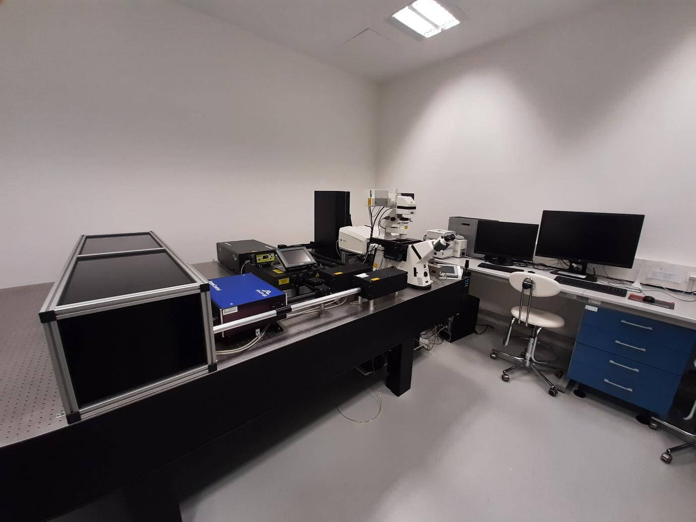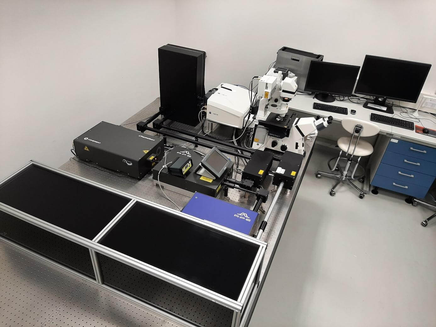 Pro servisní laboratoř Zobrazovacích metod na BIOCEV jsme ve spolupráci s firmou Carl Zeiss realizovali upgrade stávajícího vybavení (konfokálního mikroskopu s laditelným femtosekundovým laserem Coherent Chameleon Ultra II rozšířeným o OPO jednotku), a to pomocí zpožďovací linky, tvořené přesnou lineární osou LMS-270 od firmy Physik Instrumente, a prechirp jednotky od firmy APE.