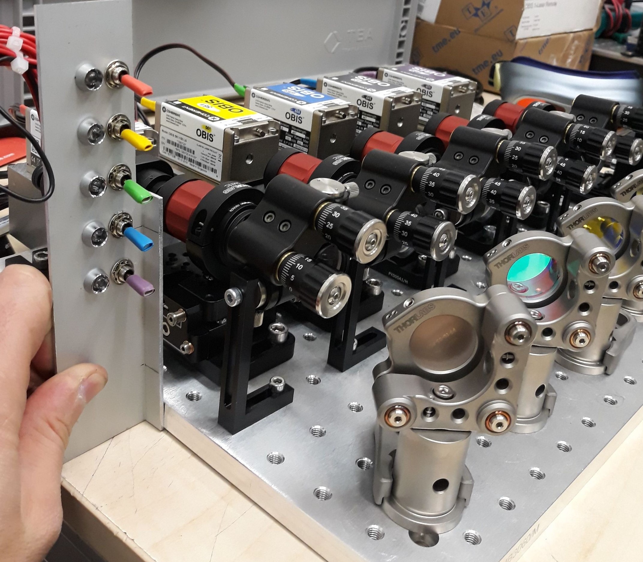 kontinuálních OBIS laserů od firmy Coherent a optickými a optomechanickými komponenty od firem
