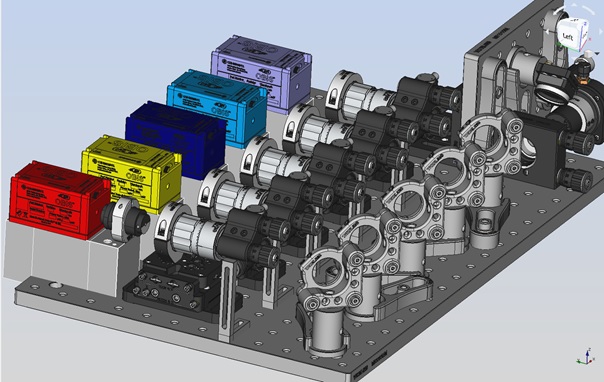 Excitační část optické desky byla tvořena pěti laserovými zdroji, jejichž svazky byly pomocí optických komponent