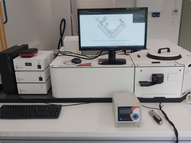 Spektrograf musí být motorizovaný typu Czerny Turner, s jedním vstupem a dvěma výstupy, musí být vybaven alespoň 4 mřížkami a upraven pro rozsah vlnových délek nejméně od 200 nm do NIR oblasti.